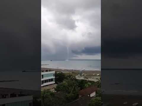 En la mañana de hoy tras el fuerte aguacero que azotó buena parte del área metropolitana, en la zona costera del Atlántico, en Puerto Colombia, se formó el fenómeno natural conocido como Tromba Marina, que es un torbellino sobre un cuerpo de agua.